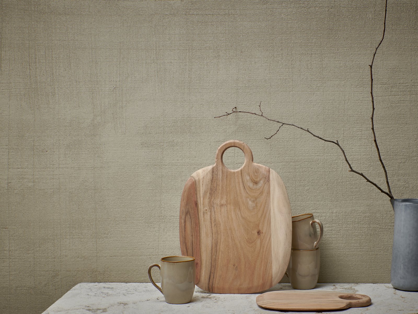 Su composición rica en minerales y su textura rugosa evocan la sensación de la tierra tallada — duradera, táctil y de belleza atemporal.