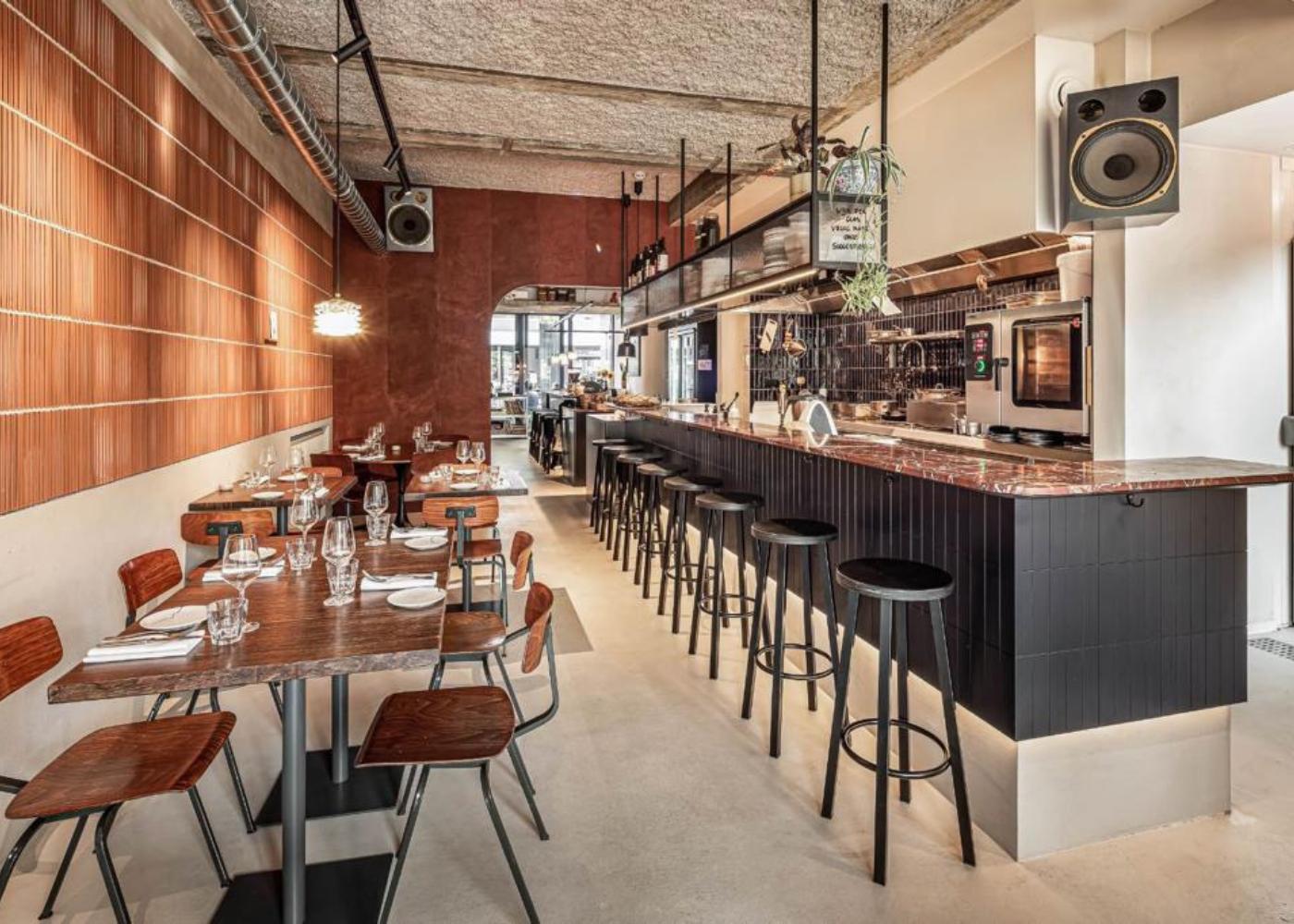 - Superficie continua — sin juntas, grietas ni líneas de lechada.